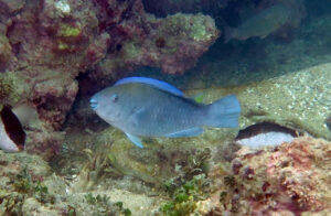 Scarus trispinosus (Perciformes:Scaridae) um peixe endêmico do Brasil conhecido como budião-azul ou bico verde está entre as espécies de peixe-papagaio mais ameaçada do mundo e se encontra como em perigo na lista da IUCN, na lista da portaria 445 do MMA e como espécie prioritária para conservação no PAN Ambientes Coralíneos.